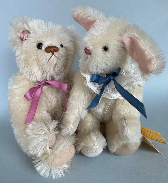 A white mohair bear and a white mohair bunny!