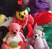 Crocheted miniature crochet bears and friends, bigger bears, too! Thread patterns and supplies, starter book. Fabric. Needle felted bears. Original crRo-FeLt Bears, fabric bears.